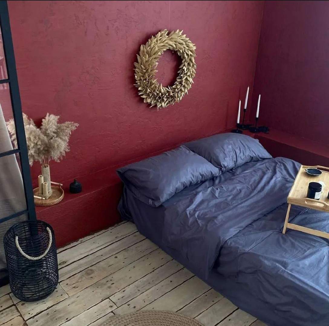 Спальня в г.Жезказган оформлена с использованием бархатисто-матовой эмали Velluto 7 в сочном бордовом цвете. Это покрытие создает глубокий, насыщенный оттенок, придающий комнате уют и романтичность. Бархатисто-матовая текстура смотрится визуально привлекательно, при этом создавая достаточно долговечное покрытие, подходящее для частой уборки.