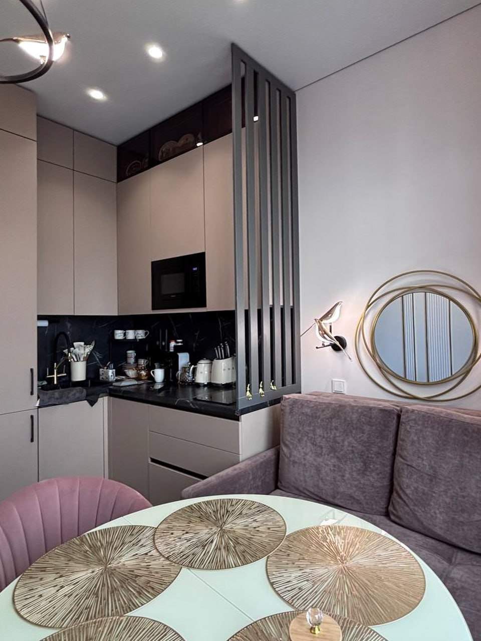 Небольшая квартира в Москве (ЖК «Диалог») стала уютным гнездышком для петербуржцев — супружеской пары с внуком. Изначально заказчики планировали останавливаться здесь во время командировок, однако им так полюбился и этот интерьер, и удобный район столицы, что, по-видимому, скоро они переедут сюда насовсем.