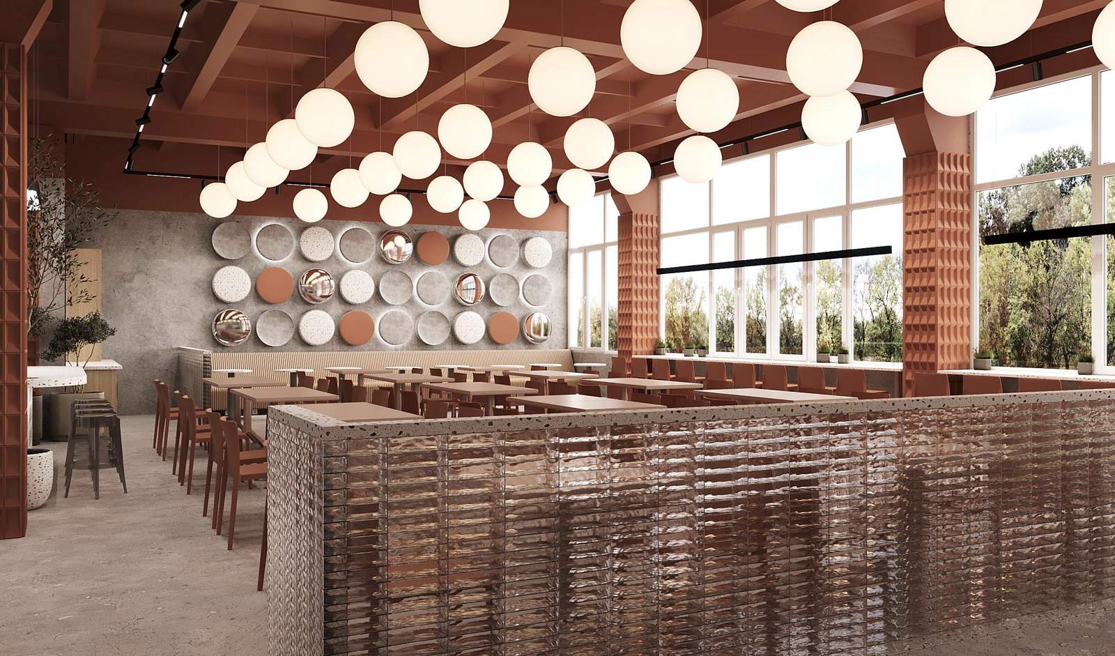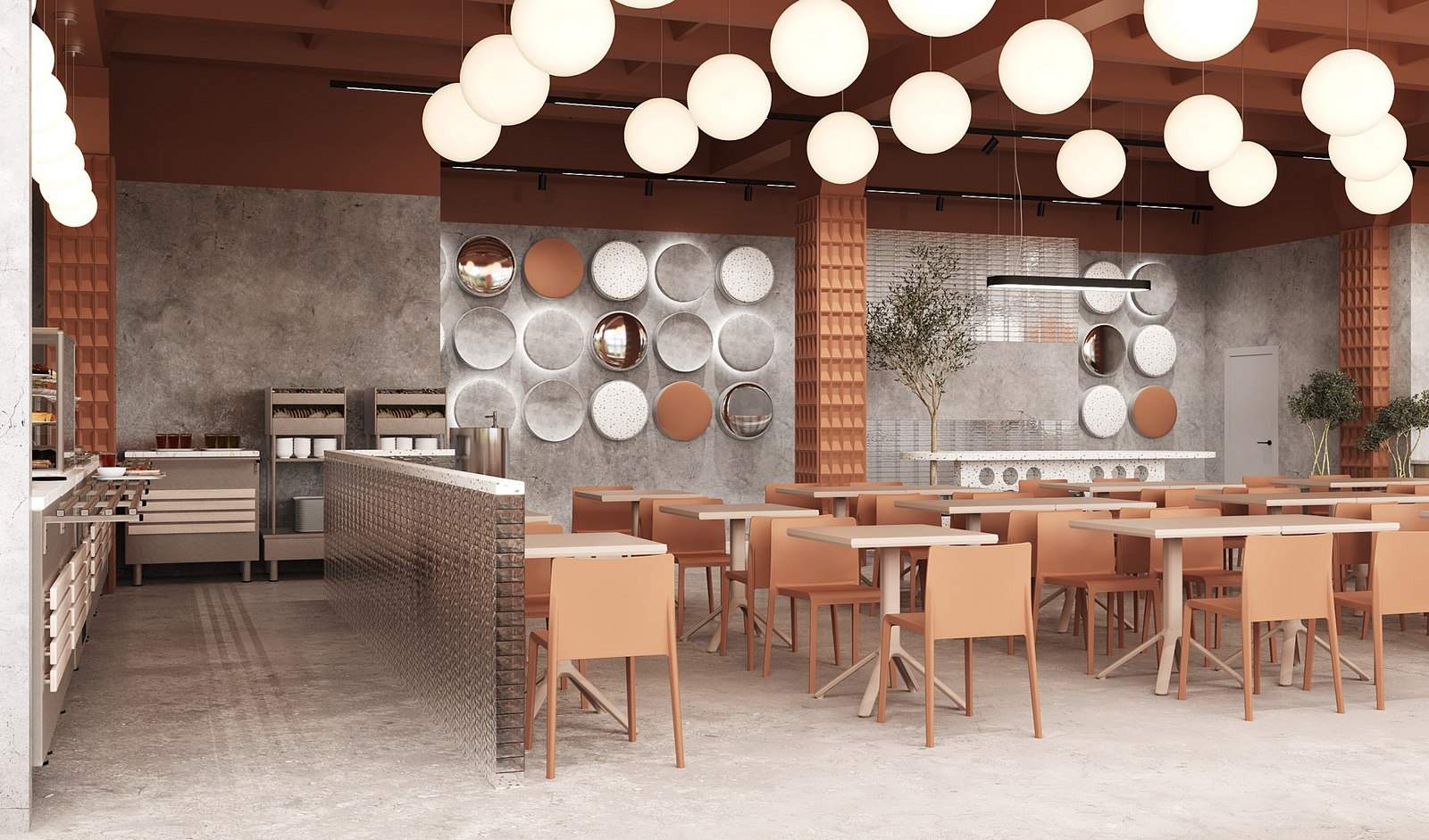 Поэтому основной задачей для дизайнера стало создание привлекательного пространства — такого, чтобы в памяти осталось приятное послевкусие от полюбившейся столовой.