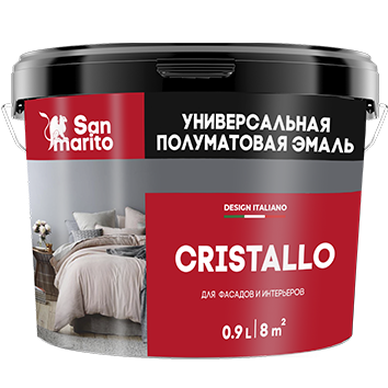 Эмаль Cristallo гарантированно хорошо подойдет, как для металла и дерева, так и для минеральных поверхностей (камень, кирпич, бетон, штукатурка и др.). Эмаль образует полуматовое покрытие исключительной прочности, может быть использована для окраски радиаторов отопления и выдерживает температуру до 900. Покрытие выдержит удары и царапины и сохранит свою белизну на протяжении длительного времени.