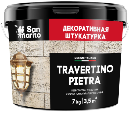 Travertino Pietra - идеальный вариант для создания покрытия, повторяющего фактуру натурального камня травертин. Декоративная штукатурка на основе натуральной извести для внутренних работ.